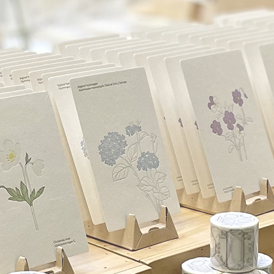 現在は自宅の小さな庭や山歩きで出会った草花や野鳥などを繊細なタッチで描く「Hütte paper works」で様々な紙アイテムやスタンプを制作しています。 私達のものづくりが、日常のひとときに静かな彩りを添えられますように。